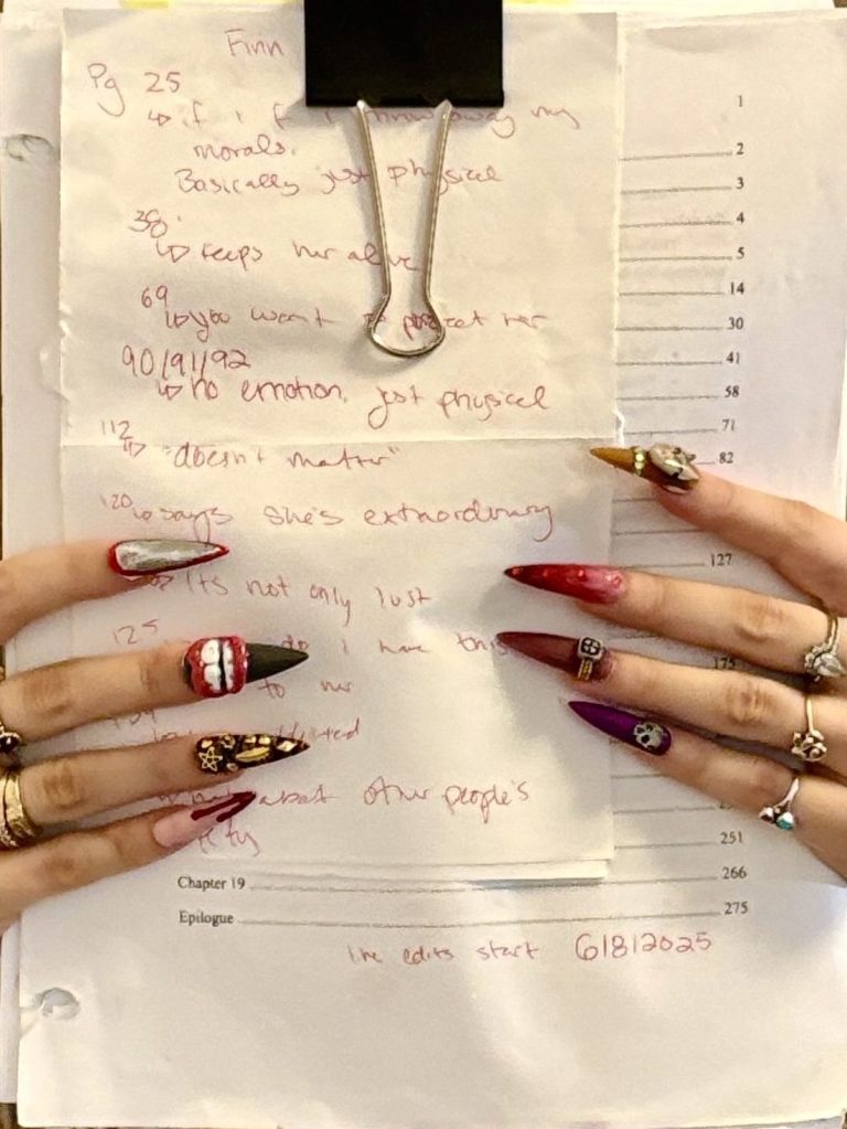 - Sexual content: there is probably more smut than plot. This includes, but isn’t limited to: bondage, rough sex, primal/running play, semi-public (sort of), blood play/knife play, spitting, degradation and praise, plus more. This book is not a handbook, in anyway, when it comes to intimacy.
